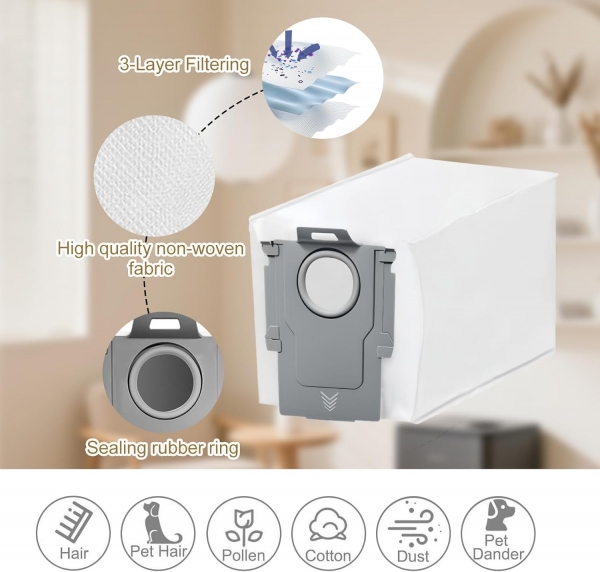 12 Dulkių siurblio maišeliu 3L, skirti „Roborock S8 Maxv Ultra“