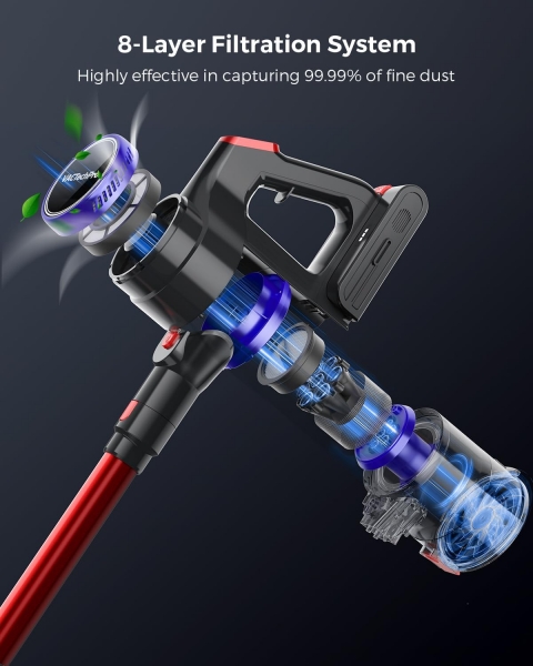 Galingas 550 W „HyperCore Pro“ bešepetis variklis (iki 48 kPa) veikia tyliai ir efektyviai šalina nešvarumus. 8 sluoksnių filtravimo sistema sulaiko 99,99 % dulkių ir alergenų, o LED išmanusis ekranas leidžia lengvai valdyti ir stebėti įrenginio būseną.