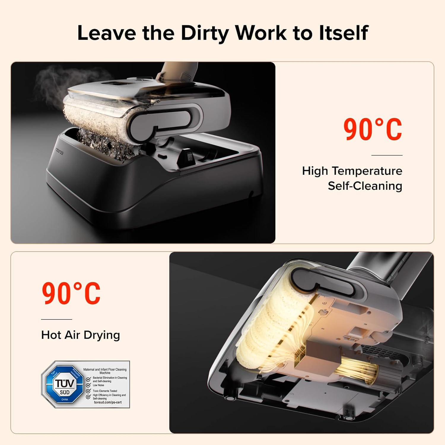 Šlapio ir sauso valymo dulkių siurblys, 180° plokščias siurbimo valytuvas, 90°C aukštos temperatūros savaiminio valymo sistema, 20 000 Pa