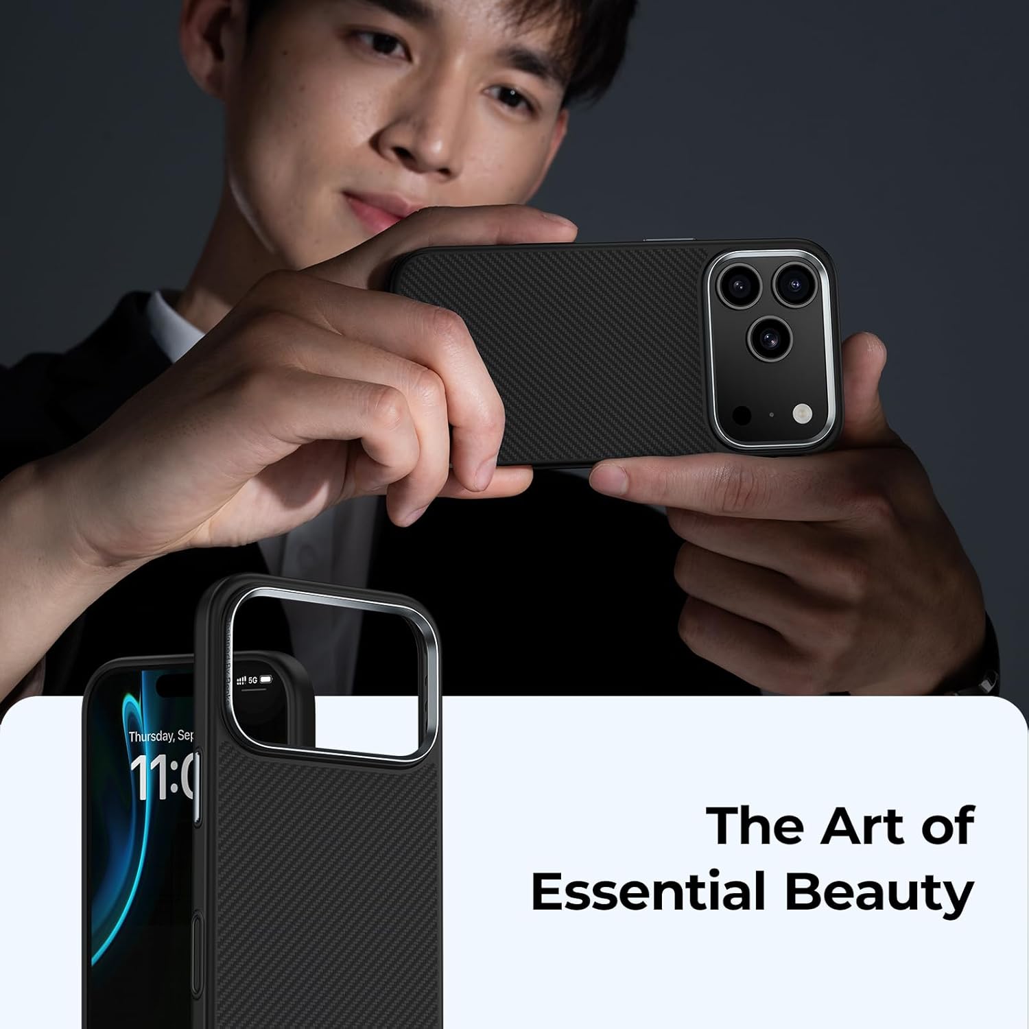 Minimalistinis „iPhone 17 Pro Max“ dėklo dizainas suteikia maksimalią apsaugą išlaikydamas ploną profilį. Galinės dalies storis sumažintas iki vos 1,27 mm, o svoris tėra 33 g, tad dėklas derina eleganciją ir patvarumą. Aukštos kokybės 600D Kevlaro pluoštas ir TPU kraštai užtikrina patogų laikymą, o patobulinta Excimer UV danga efektyviai atspari pirštų atspaudams ir riebalų dėmėms.