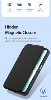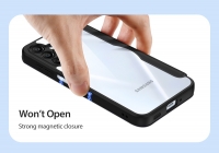 „Dux Ducis Skin X Pro“ telefonų dėklas – telefono apsauga su įmontuotais magnetais, kurie dera su MagSafe priedais, nepriekaištingai pritvirtinimo patirčiai, belaidžio įkrovimo naudojimui.