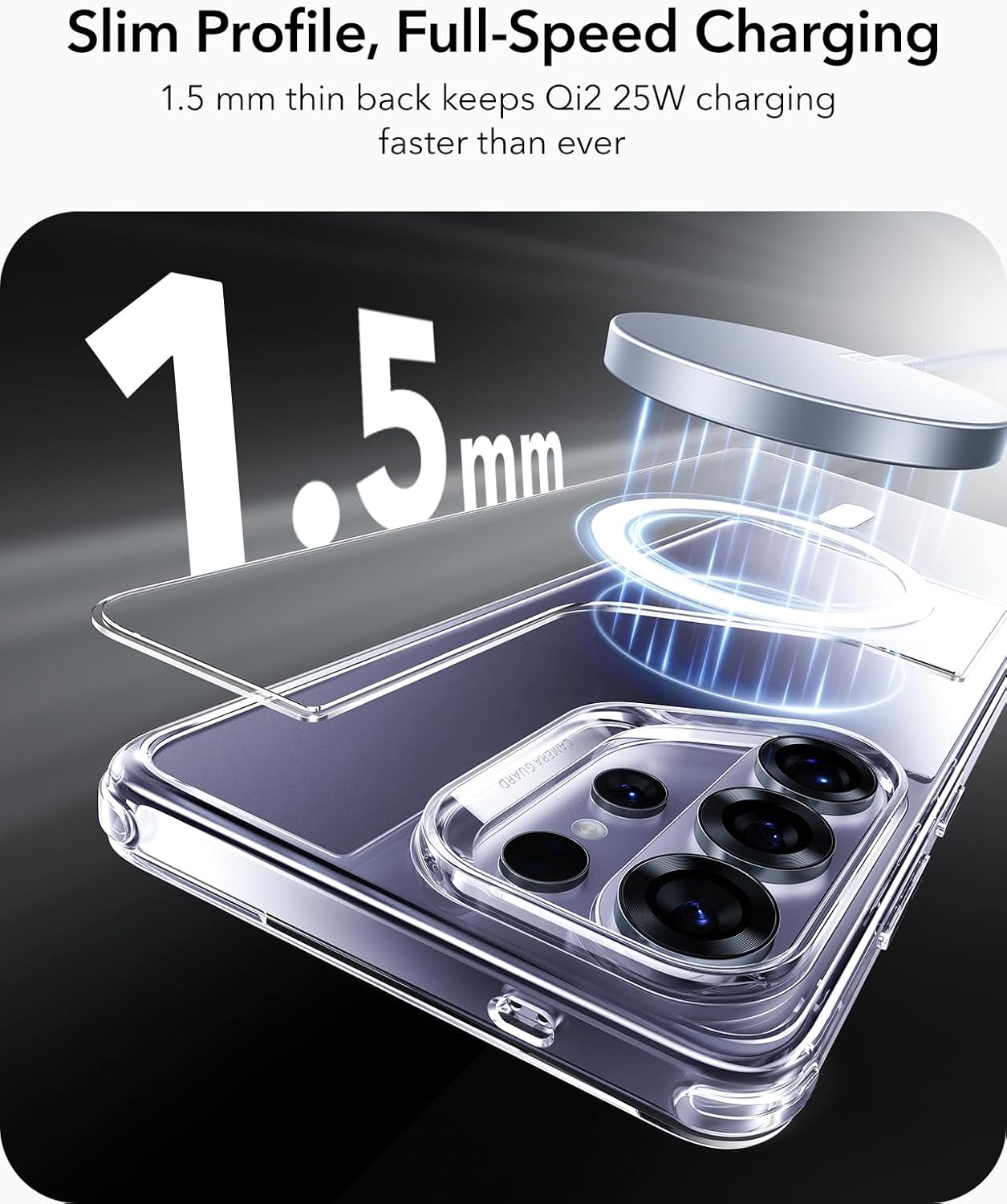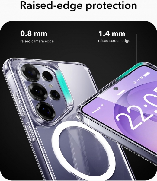 ESR deklas išlaiko visas funkcijas su tiksliais garsiakalbio ir prievadų išpjovimais bei lengvai paspaudžiamais mygtukais.Stipresnis magnetinis užraktas: galingi įmontuoti magnetai, kurių magnetinė jėga yra 1500 g, leidžia greičiau ir lengviau belaidžiu būdu įkrauti telefoną ir užtikrina saugų užraktą su bet kuriuo „MagSafe“ priedu.Apsauga nuo kritimų karinio lygio srityje: griežtai išbandyta siekiant užtikrinti visišką apsaugą iš visų pusių, su specialiai sukurtais „Air Guard“ kampais, kurie sugeria smūgius, kad jūsų telefonui nereikėtų jų numesti.Apsauga nuo pakeltų kraštų: pakelti ekrano kraštai ir kameros apsauga užtikrina didesnį atsparumą įbrėžimams.Išlaikykite originalumą: lengvas, lygus, krištolo skaidrumo akrilinis galiukas leidžia pademonstruoti originalų „Samsung Galaxy S26 Ultra“ elegantišką išvaizdą.