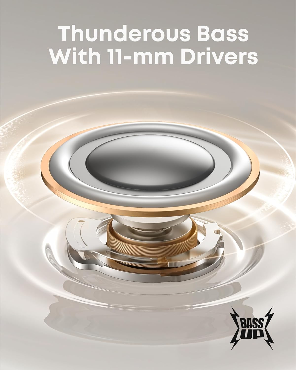 Griaustingas bosas: Galingi 11 mm kompoziciniai garsiakalbiai skleidžia žavų garsą, kurį sustiprina „BassUp“ technologija, kad žemieji dažniai būtų intensyvūs ir galingi.